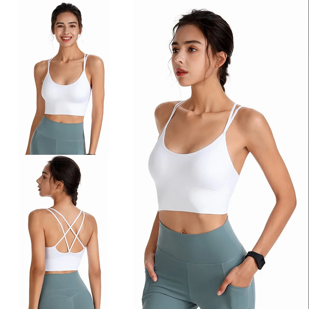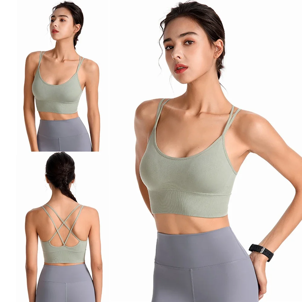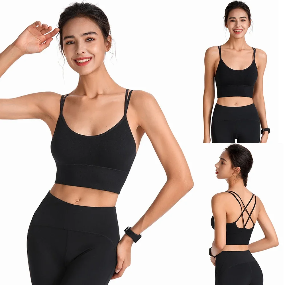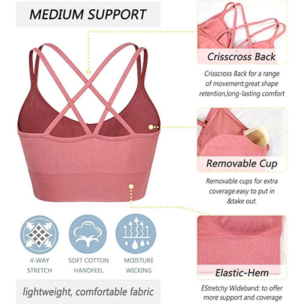 Unique Design 】: This strappy sports bra offers extra back support, fashionable and stylish. Crisscross back straps let you twist with ease, fits for gym,running, workouts, yoga, pilates also daily wear.